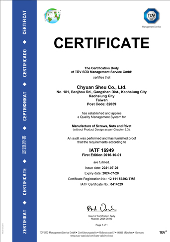● IATF 16949及ISO 9001認證,成為合格汽車零件供應商。